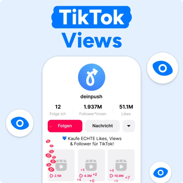 DeinPush vermittelt Reichweite für soziale Netzwerke wie Instagram, TikTok und Facebook – darunter Follower, Likes und Videoaufrufe zu attraktiven Konditionen. Wir legen großen Wert auf eine schnelle Abwicklung und freundlichen Support. Aus ethischen und rechtlichen Gründen behalten wir uns vor, bestimmte Inhalte von unseren Leistungen auszuschließen. Dazu gehören unter anderem politische Parteien und Personen, illegale Inhalte, FSK-18-Material, rassistische Beiträge, Produktbewertungen, Gewinnspiele und Abstimmungen. Näheres regeln unsere Allgemeinen Geschäftsbedingungen. Wichtig: DeinPush ist kein offizieller Partner der genannten sozialen Netzwerke. Alle verwendeten Markennamen wie Instagram™, Facebook™ und TikTok™ sind Eigentum ihrer jeweiligen Unternehmen – Instagram LLC, Facebook Inc. und Bytedance Ltd.